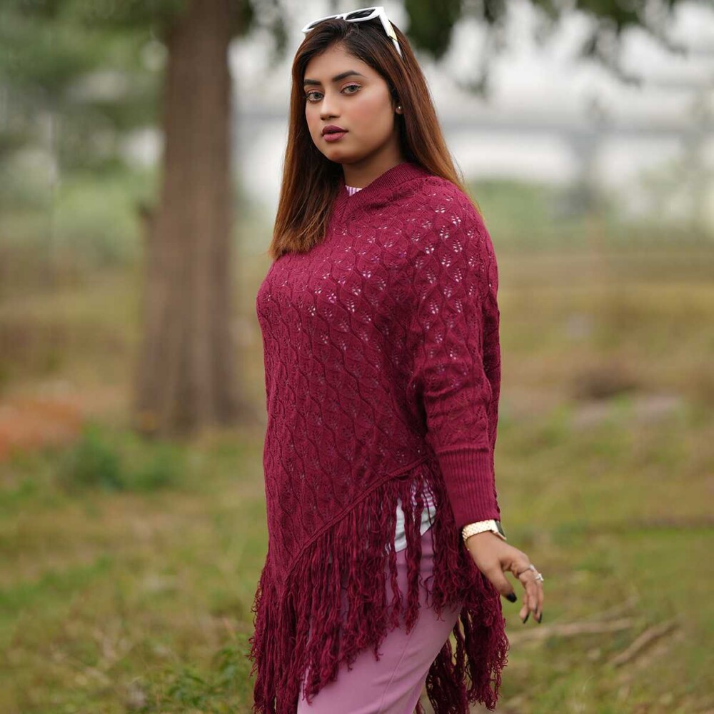 Pattern: Diamond open-knit with decorative fringes